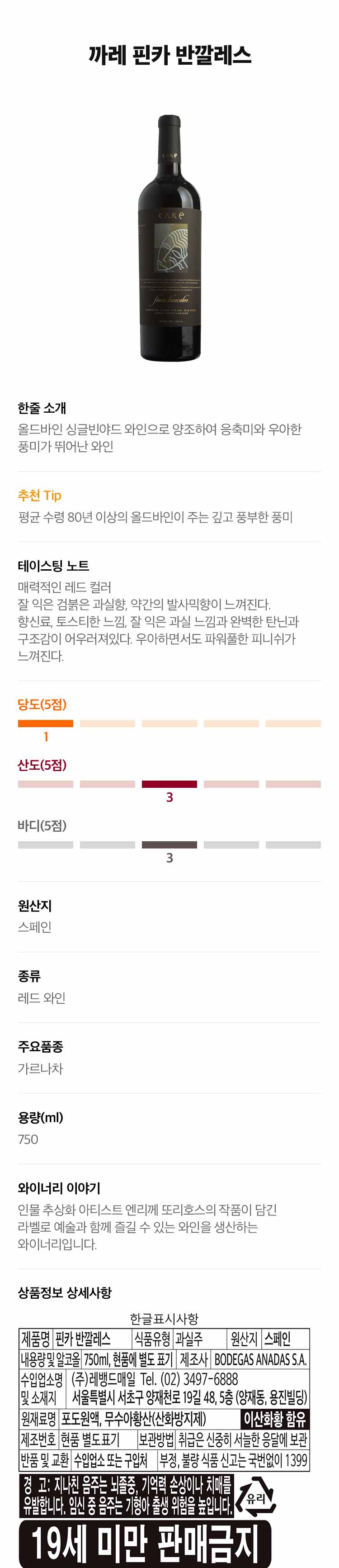 상품명에 빈티지가 표시되지 않은 경우 임의 빈티지이며, 빈티지에 따라 라벨이 상이할 수 있습니다.