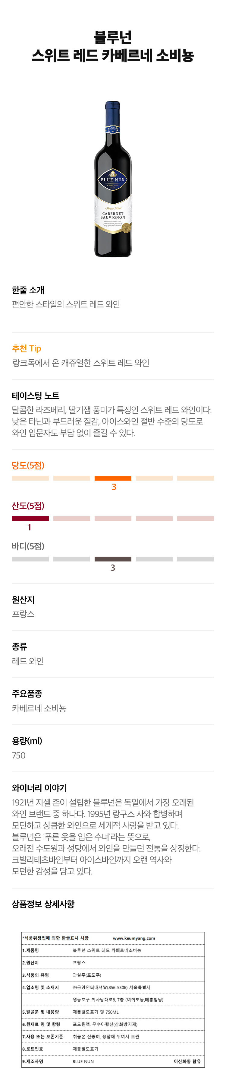 Blue Nun Cabernet Sauvignon Sweet블루 넌 까베르네 소비뇽 스위트
