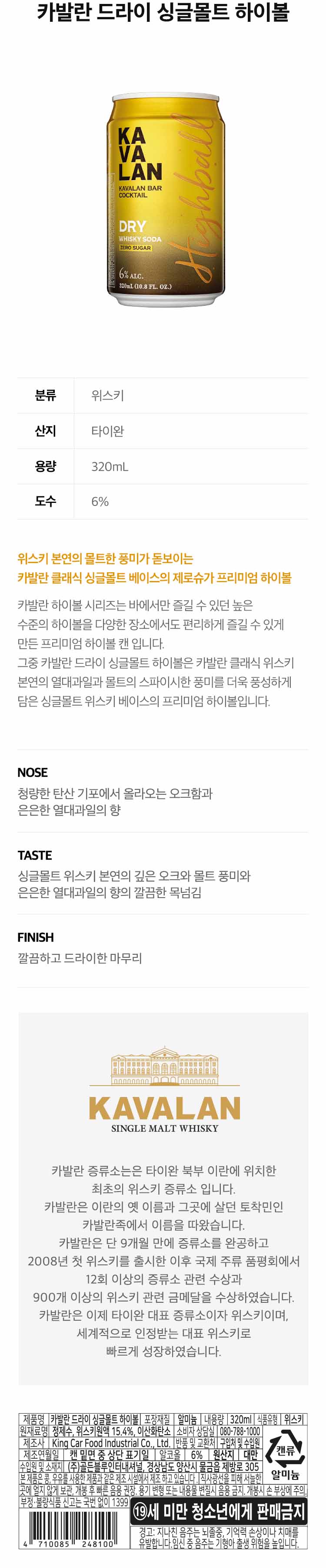 카발란 드라이 하이볼 캔 320ml 1박스(24캔)