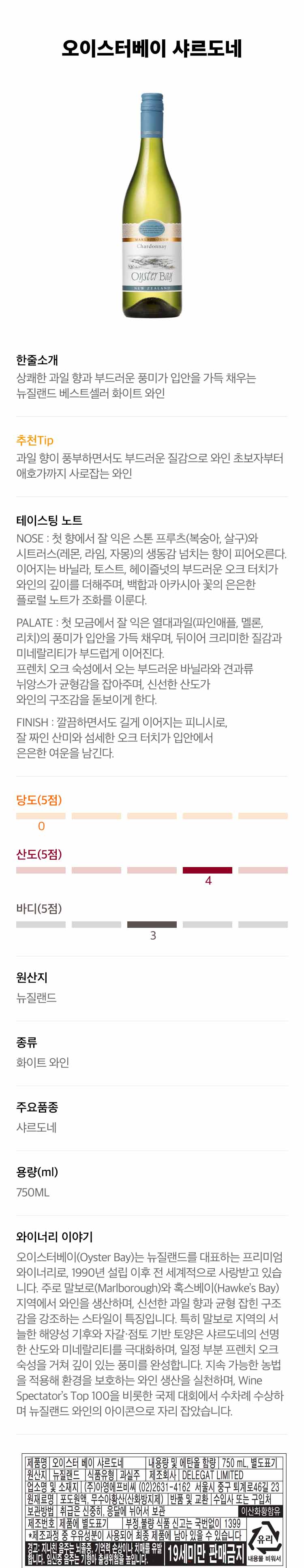 Oyster Bay Chardonnay오이스터 베이 샤르도네
