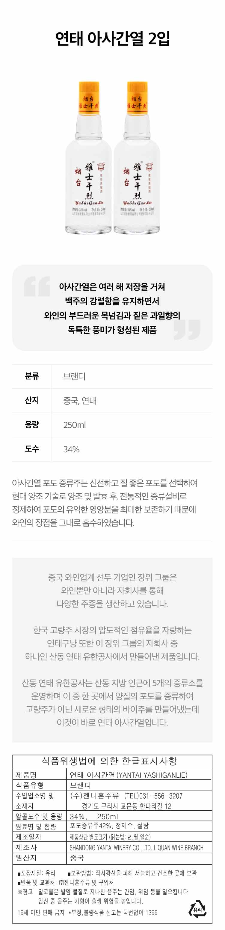 Yantai Yashiganlie 2 Bottles Set연태 아사간열 2병 세트