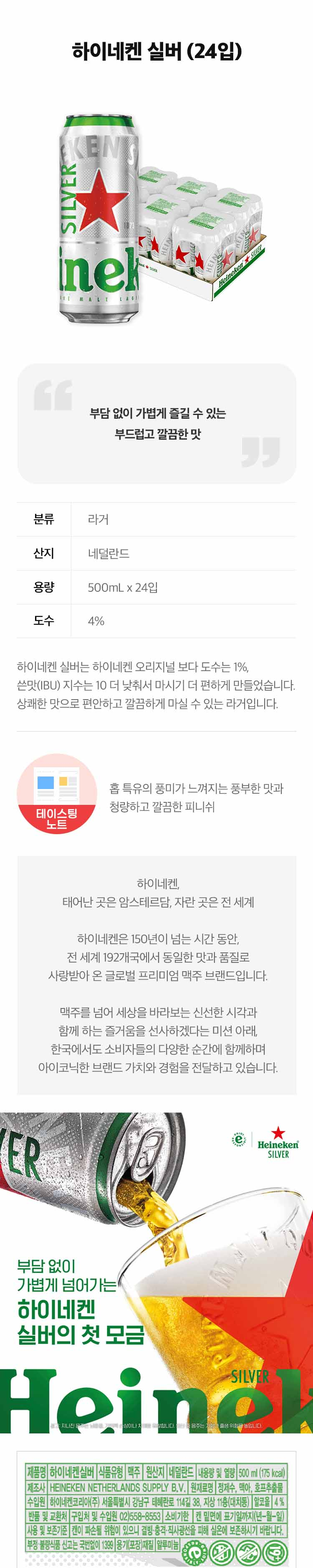 하이네켄 실버 캔 500ml 1박스(24캔)