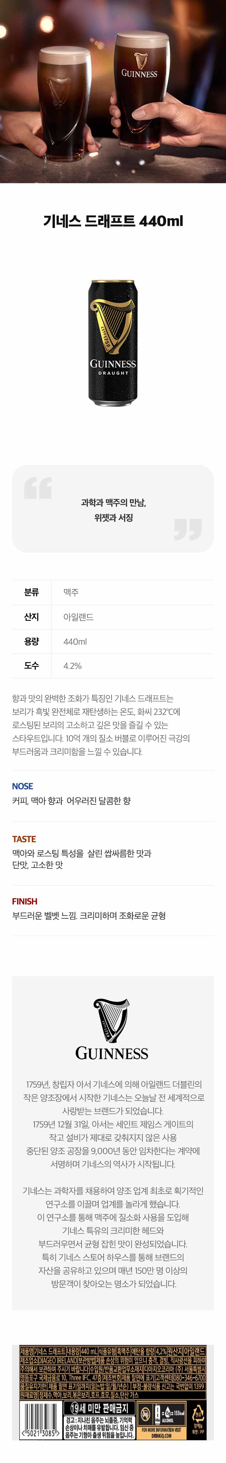 기네스 캔맥주 440ml 1박스(24캔)