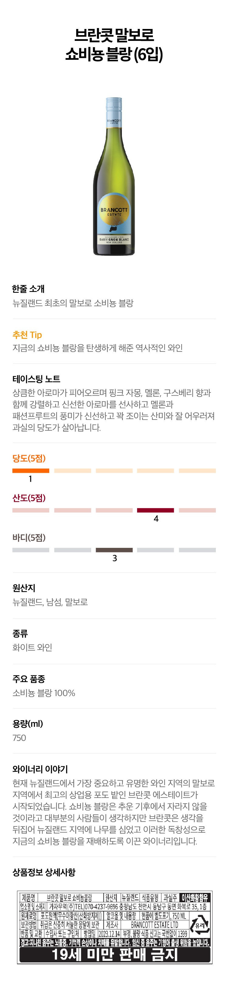 브란콧 에스테이트, 소비뇽 블랑 1박스(6병)