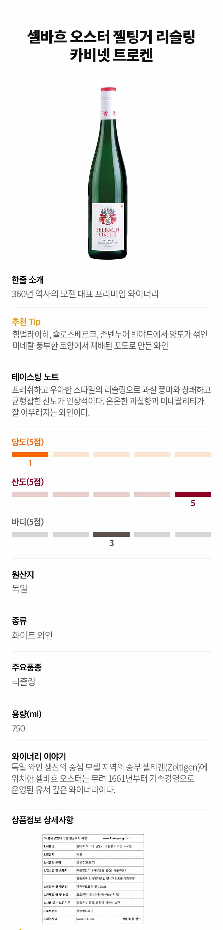 셀바흐 오스터 젤팅거 리슬링 카비넷 트로켄