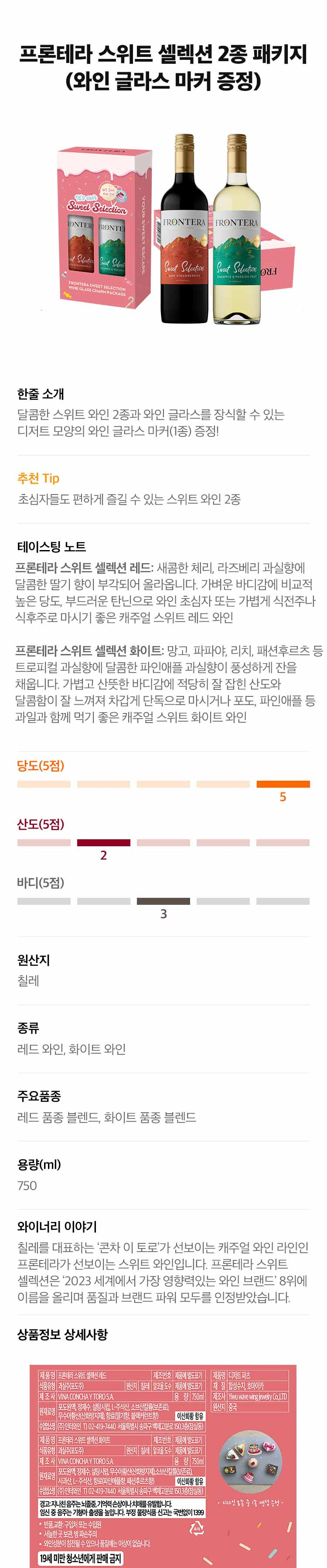 프론테라 스위트 셀렉션 2종 와인 글라스 마커 패키지