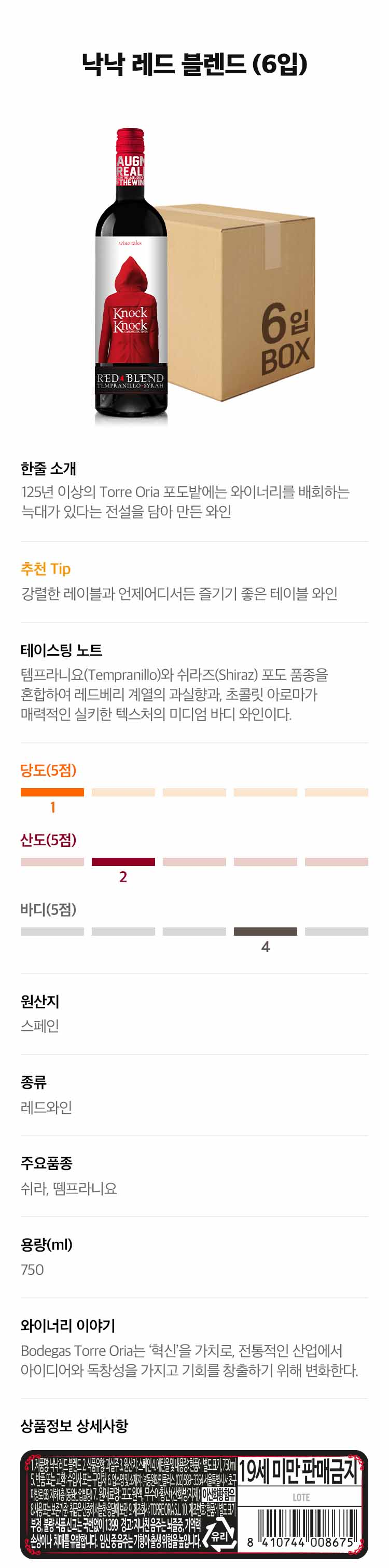 낙낙 레드 블렌드 6병 세트