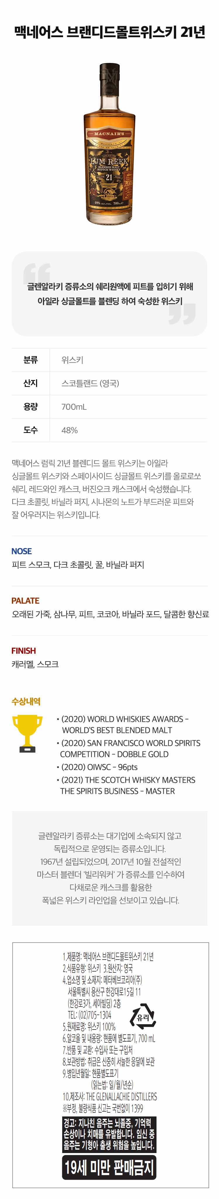 맛바닐라, 오크, 피트, 코코아, 달콤한