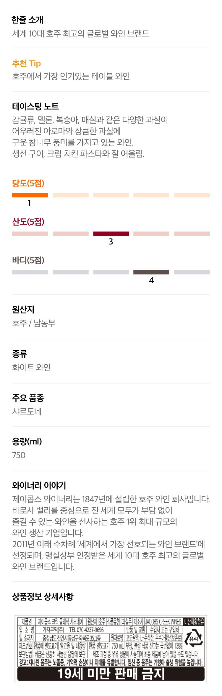 상품명에 빈티지가 표시되지 않은 경우 임의 빈티지이며, 빈티지에 따라 라벨이 상이할 수 있습니다.